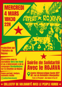 « Tous les Évènements MONTPELLIER : SOIRÉE DE SOLIDARITÉ AVEC LE ROJAVA 4 mars à 18h30 - 22h00 Préliminaires, pénétration, orgasme ? par la Cie La Centrifugeuse » Ajouter au calendrier Google Agenda iCalendar Outlook 365 Outlook Live Détails Date : 4 mars Heure : 18h30 - 22h00 Lieu Centre démocratique Kurde MTP 40, rue du Belvédère Montpellier, 34080 France + Google Map