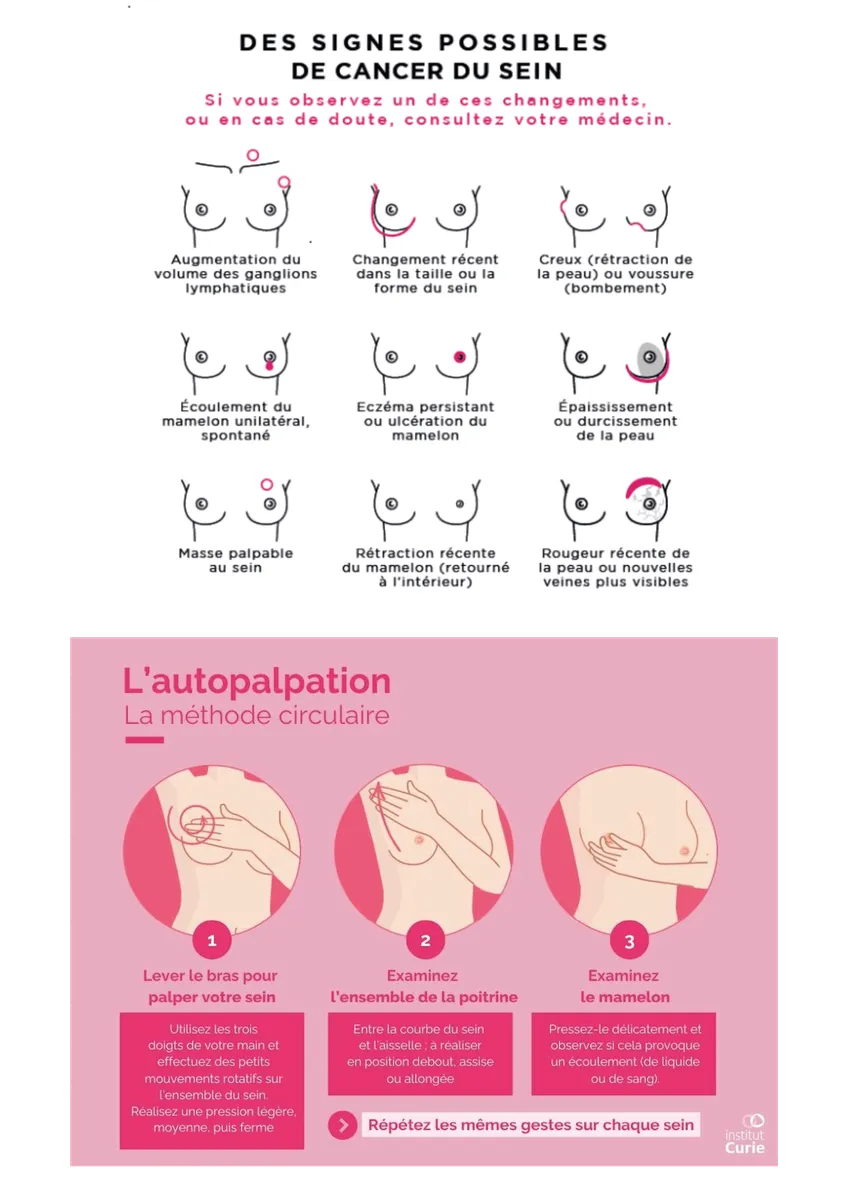 A la distribution éphémère de ruban rose, nous préférons des messages concrets. Apposons et diffusons dans tous les lieux de travail ces affiches en recto du tract. Des signes avant-coureurs d’un cancer peuvent être détectés par soi-même mais pour cela il faut en avoir été informée !